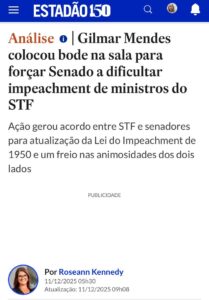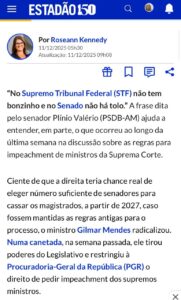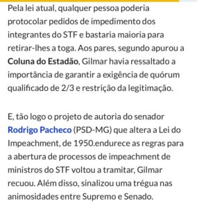POLÍTICA – A Constituição que o STF deve respeitar ( e não alterar sem PEC) diz que todo poder emana do povo! Do que os supremos tem tanto medo para insistir nessa blindagem insana? Se não errarem acaba esse pavor. Tirar o povo da Constituição para não sofrer impeachment é o verdadeiro golpe.