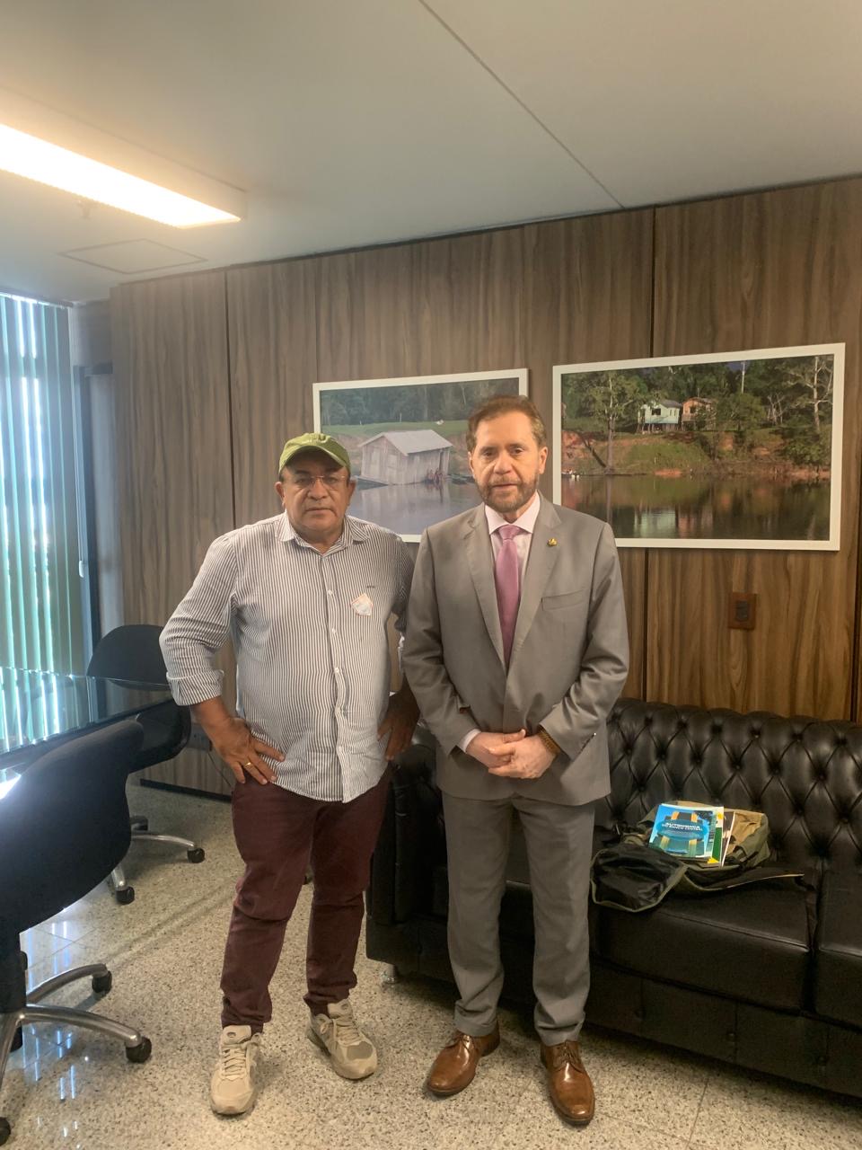 “Com meu amigo Donizete Pinheiro, presid da Coopeixe , de Tabatinga. Discutimos como ajudar para que o programa Minha Casa, Minha Vida, seja levado a beneficiar pescadores e associados de entidades comunitárias que recebem doações de peixes comprados pela cooperativa”, relata Plínio.