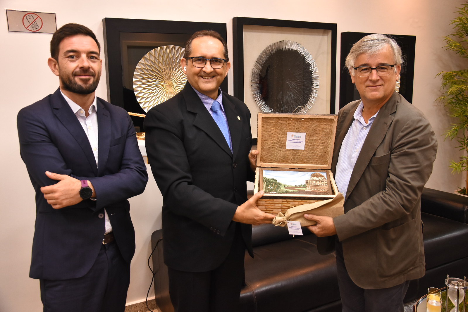 Ao final do encontro, o embaixador foi presenteado com um kit de produtos artesanais como cortesia da visita.