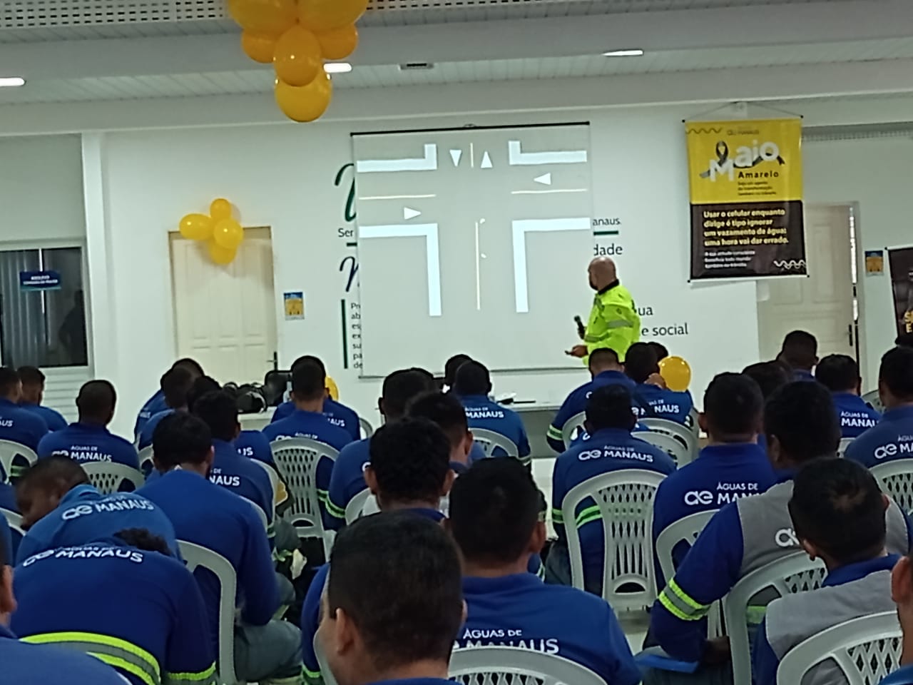 Em mais uma atividade voltada a reduzir acidentes de trânsito na cidade, o Instituto Municipal de Mobilidade Urbana (IMMU), promoveu, no domingo (22), uma palestra para funcionários da empresa Águas de Manaus, como mais uma ação da campanha “Maio Amarelo”, em esforços para reduzir acidentes e vítimas de imprudência no trânsito.