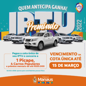 Ao pagar a cota única ou as parcelas do IPTU 2022, o contribuinte já está concorrendo aos prêmios, que serão sorteados no final deste mês de março.