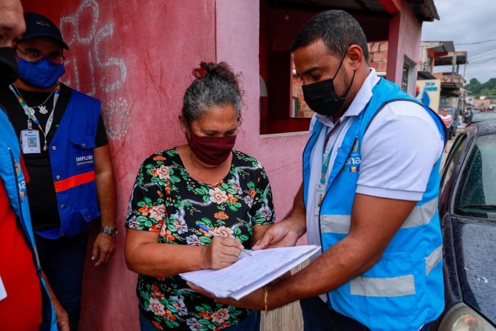 Assessores técnicos da Prefeitura de Manaus, da Vice-Presidência de Habitação e Regularização Fundiária (Vpreshaf), estão realizando vistorias de levantamento técnico e cadastro social dos beneficiários para a elaboração dos títulos.
