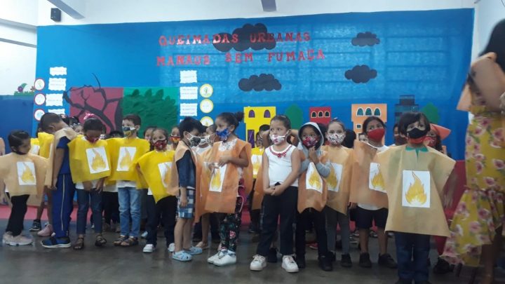 Na última semana, alunos da creche Professora Elza Damasceno da Silva, do bairro Santo Antônio, também realizaram apresentações de combate às queimadas.